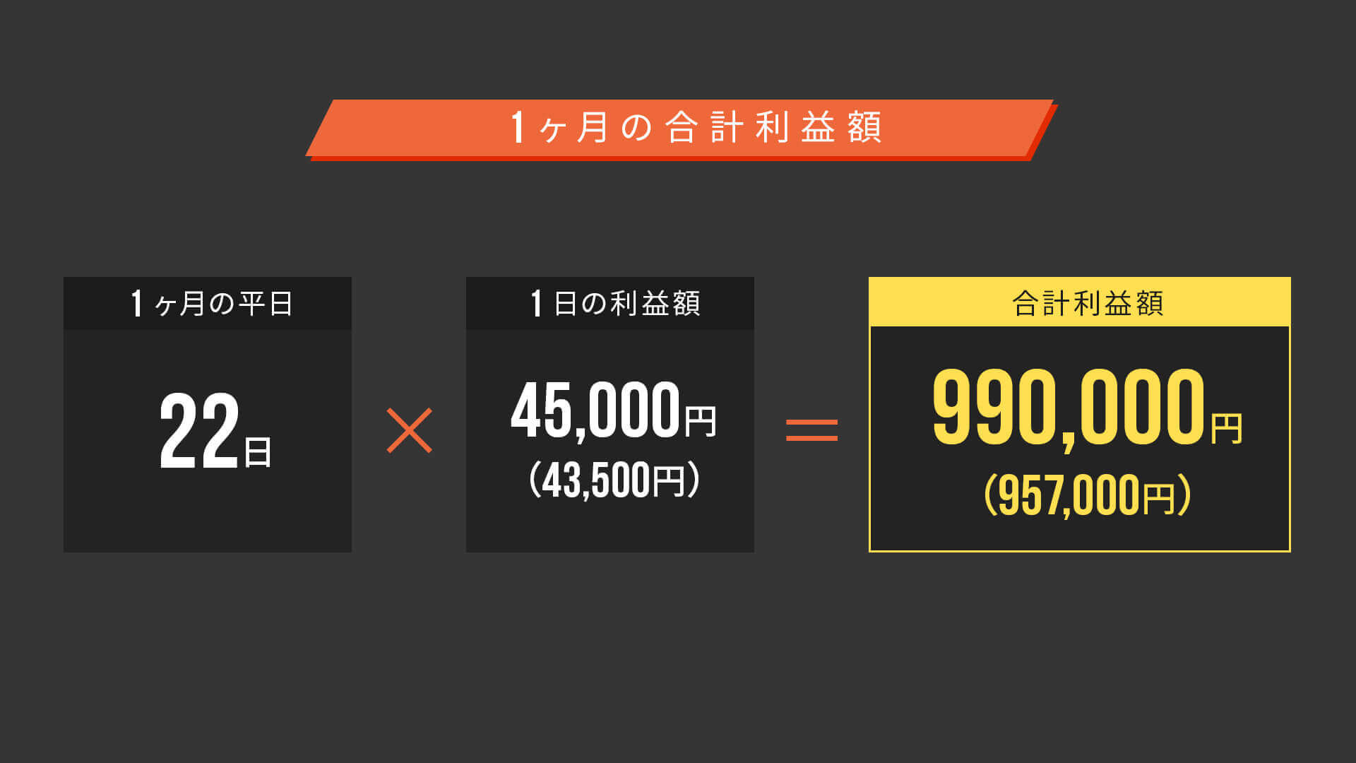 1日4万3千円〜4万5千円の利益が出ます。